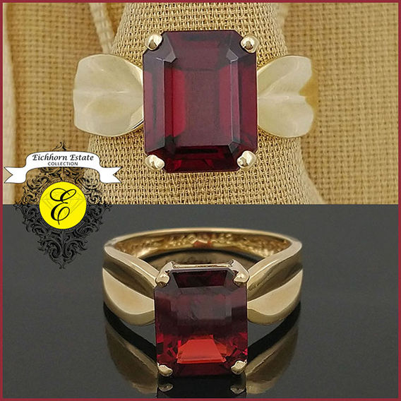 14K yellow gold ring with an emerald-cut garnet 4-prong set, finger size 6 weighing 3.4 grams stamped: 14K A62 - SOLD